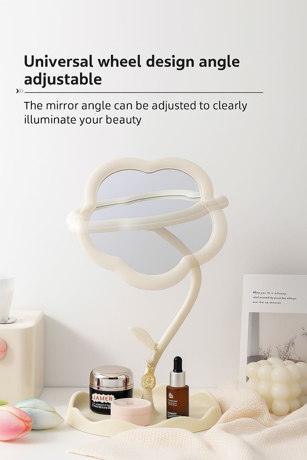 💖 360° Rotatable Flower Mirror with storage tray – Cute, Compact, Classy!